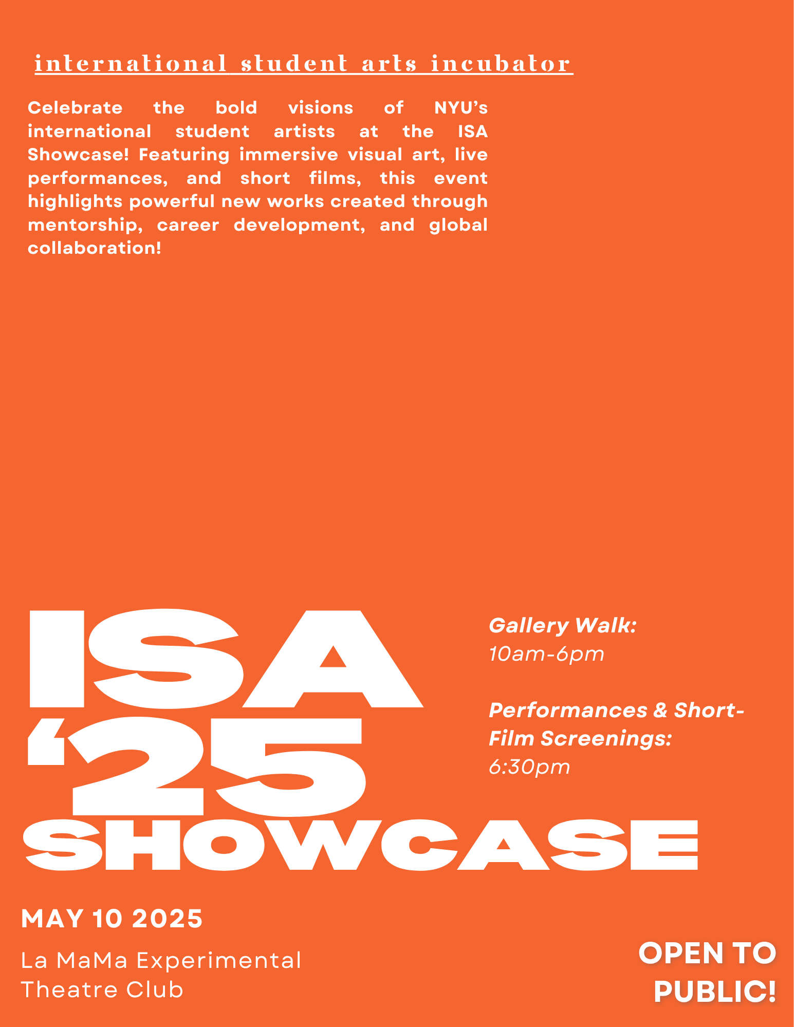 A few months ago, I got into a program called the International Students Arts Incubator (ISA) at NYU, which provides resources for students to showcase a creative project at the end of the semester at the renowned LaMama Experimental Theatre in New York City! The program also guides students through the process and requirements of securing the O-1 Visa, giving us mentorship from creative professionals and connections to opportunities of creative development! You can find more information on their site: https://wp.nyu.edu/productionlab/isa/ !