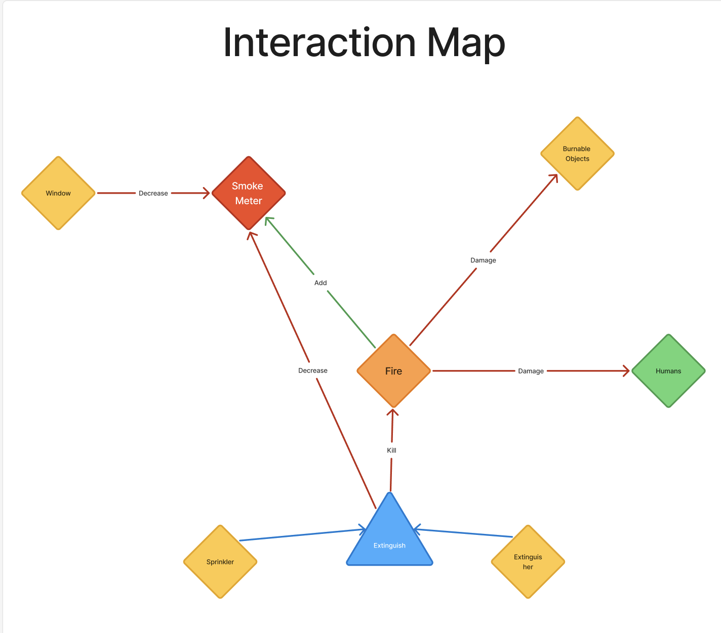As the lead designer on Fire Raiders, I created and documented the game’s full gameplay loop, resource systems, level structure, and player objectives. The core loop tasks players with rescuing civilians, solving environmental puzzles, managing limited extinguisher fuel, and navigating fire-filled platforming levels using a jetpack. I designed clear win and lose conditions. Using these design flows as guidelines, I started developing prototypes for the game’s interaction system, building a foundation that was easily scalable to content that would later be added to the game